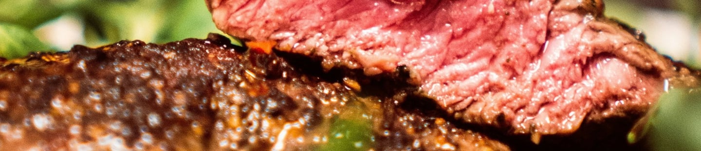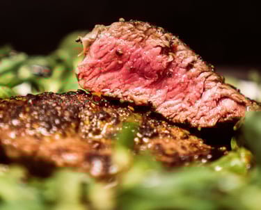 Bistec cocinado al punto justo para resaltar su jugosidad natural.