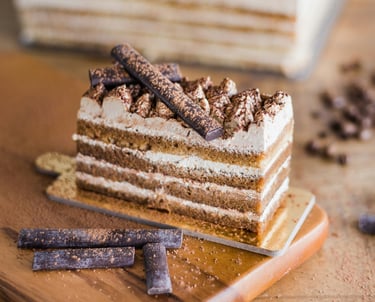 Clásico postre italiano con capas de bizcocho empapado en café y crema mascarpone, coronado con un toque de cacao puro.